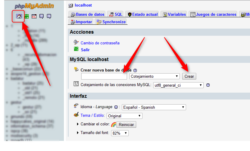 phpMyAdmin, podemos seleccionar el nombre de la base de datos, y a