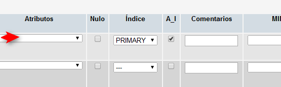 y seleccionando “PRIMARY” y marcando AI (Autoincremento)
