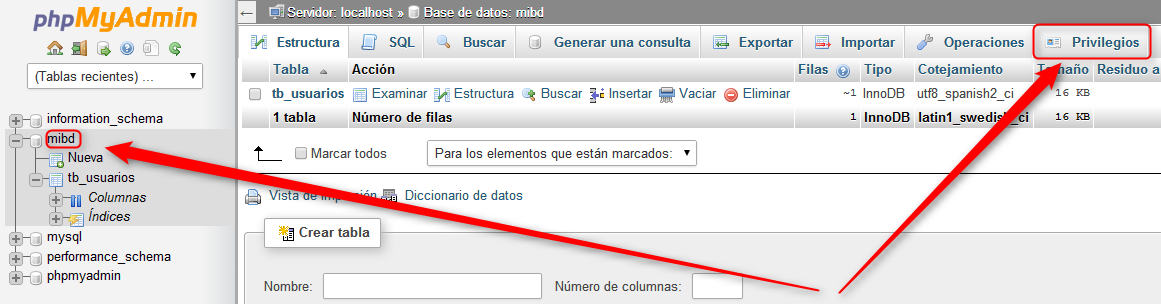 y accedereis al motor con el nuevo usuario.