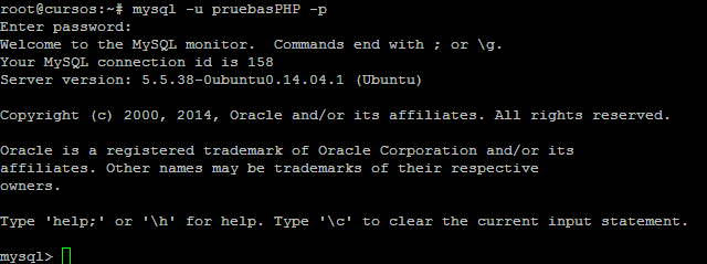 - el nombre de usuario. el nombre que hemos creado antes,:”pruebasPHP”